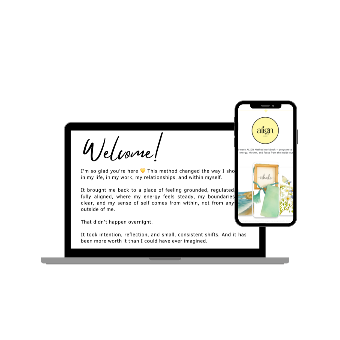 The ALIGN Method is a 6-week program for high performers who are tired of running on fumes. It teaches you how to regulate your energy, create rhythms that actually support you, and finally feel grounded instead of constantly on edge.